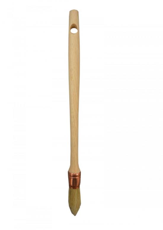 > Mélange soies/synthétique. > Monté sur fleur. > Virole acier cuivré. > Manche bois naturel poncé.